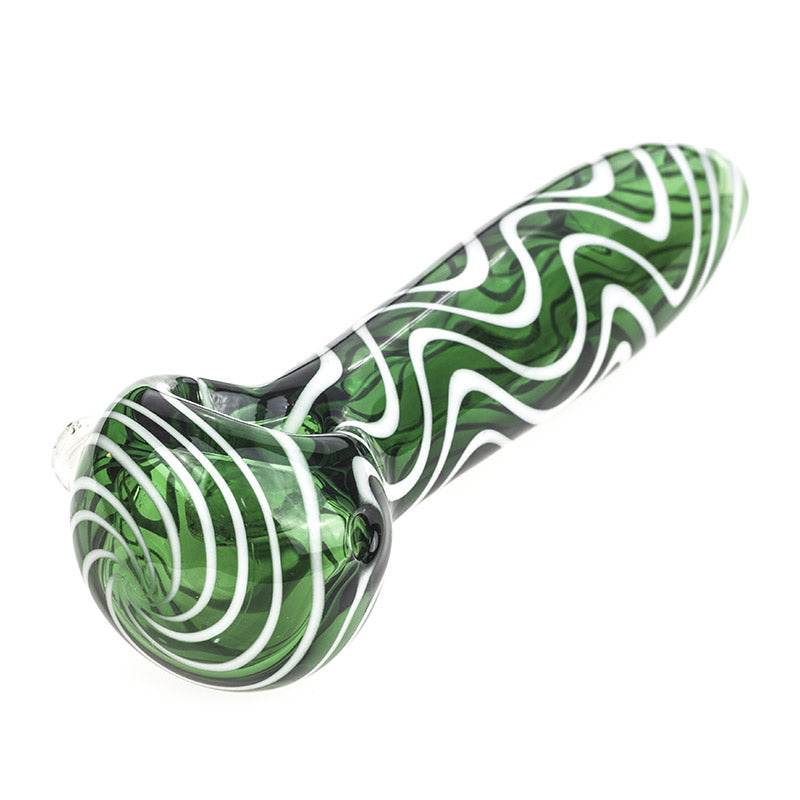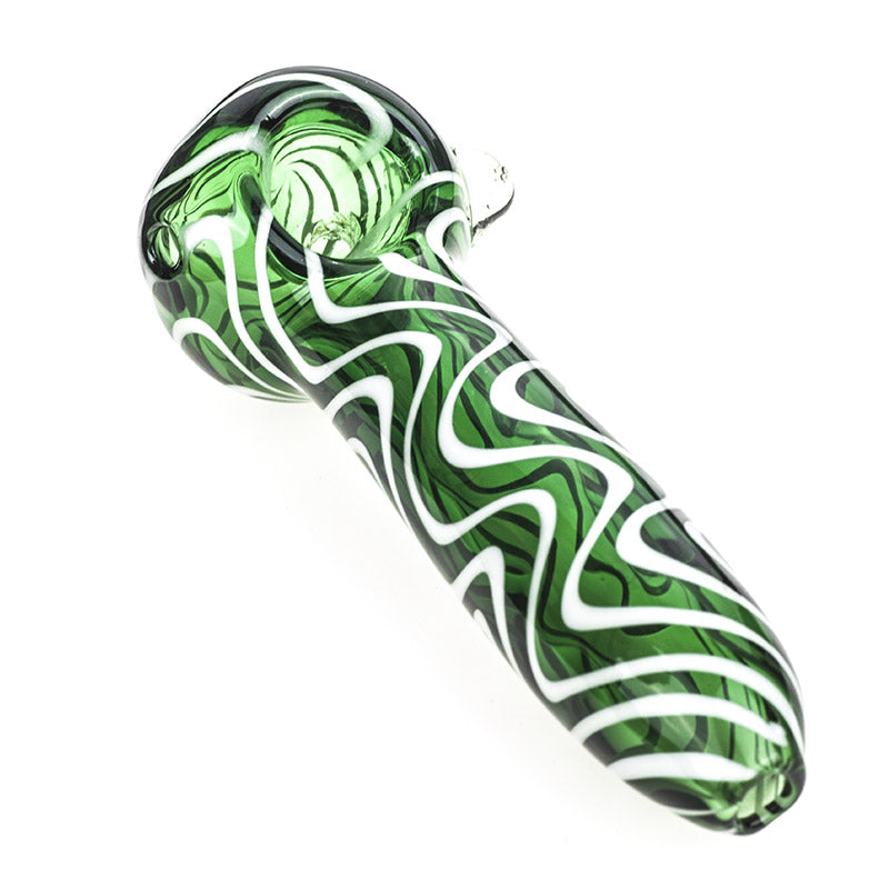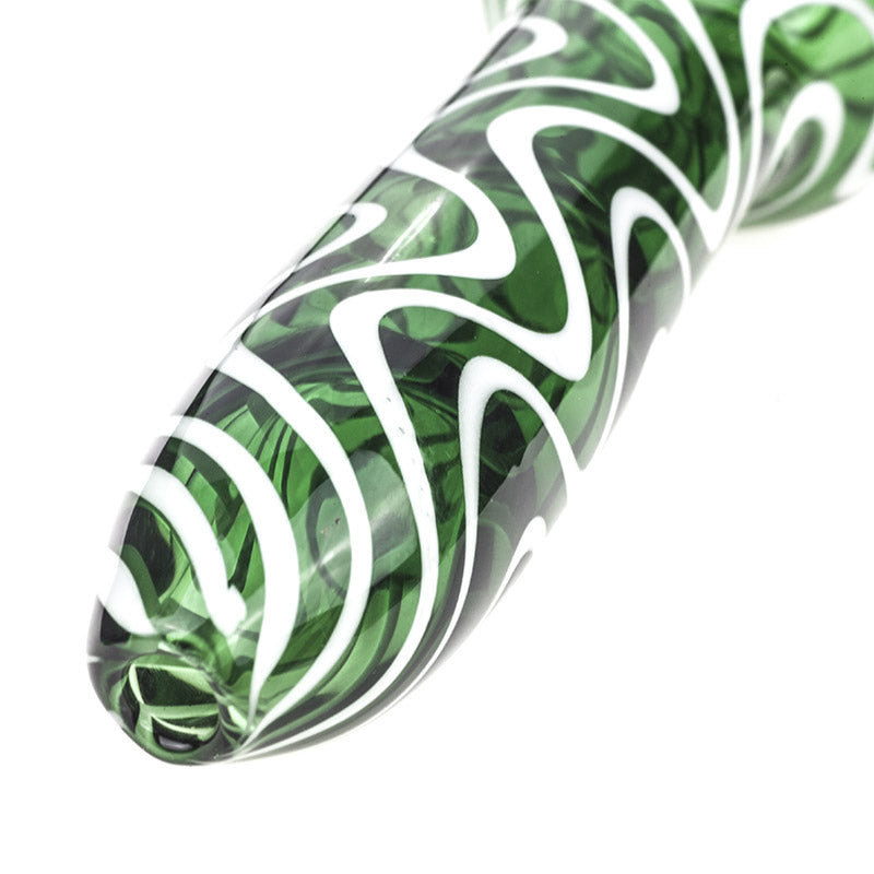 White Stripes Green Glass Pipe