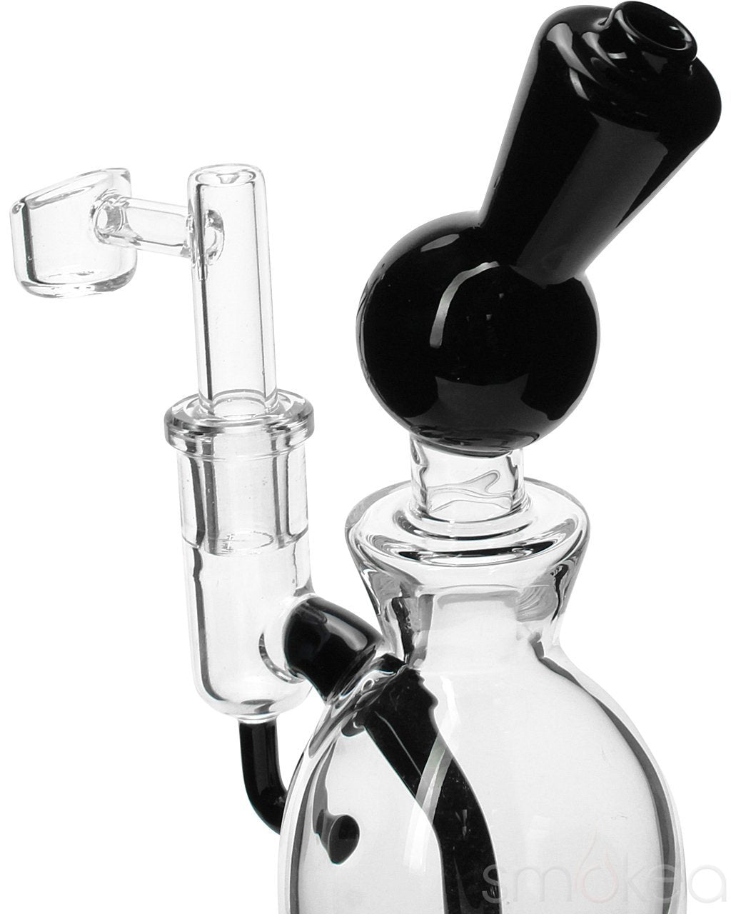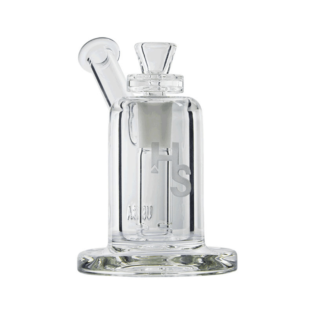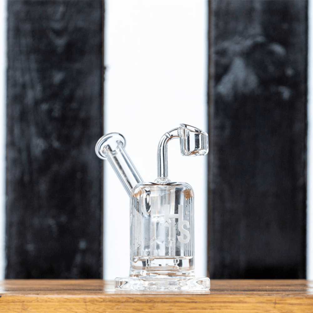 Mini dab rig or nano dab rigs can sit on the palm of your hand, but you can still use ordinary size quartz bangers or titanium nails on them(14mm male or female), but the downside of using a mini dab rig is that they won't be able to contain as much water for chilling the vapor like a normal-sized dab rig. But they are still super fun to use and super lightweight to carry!