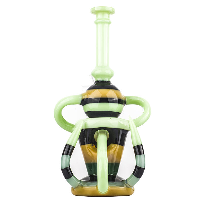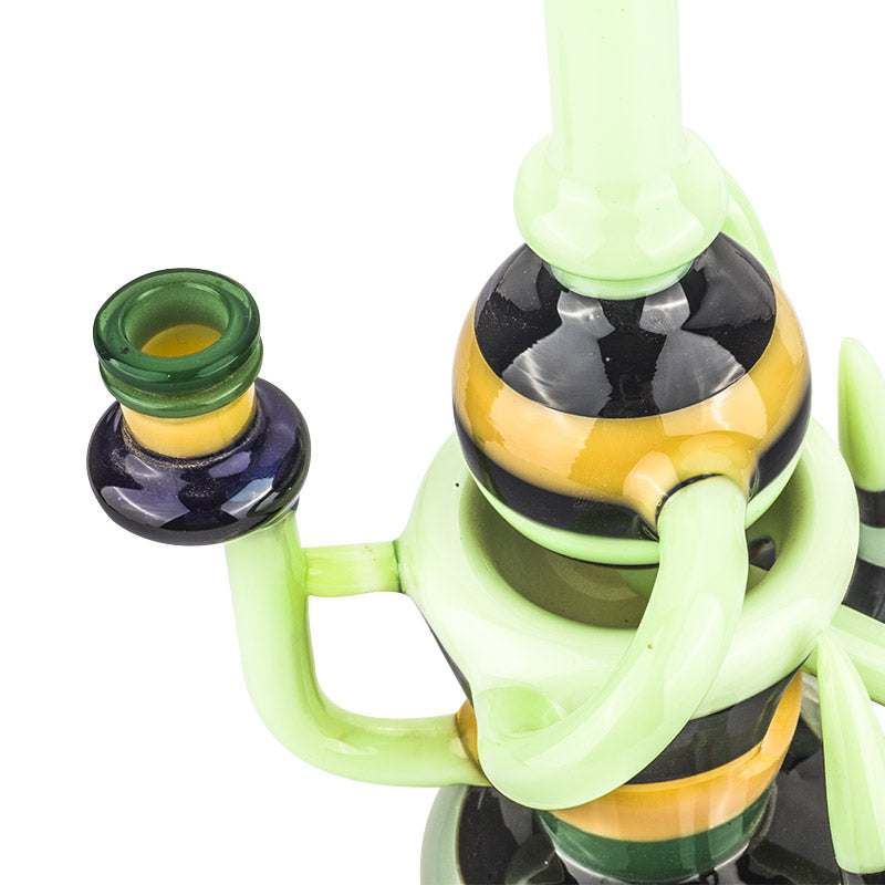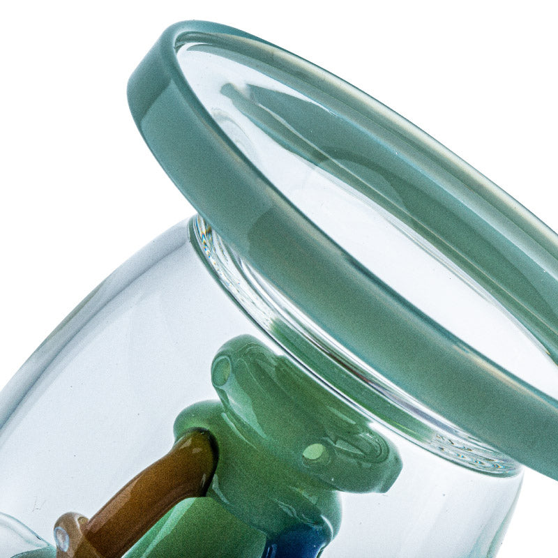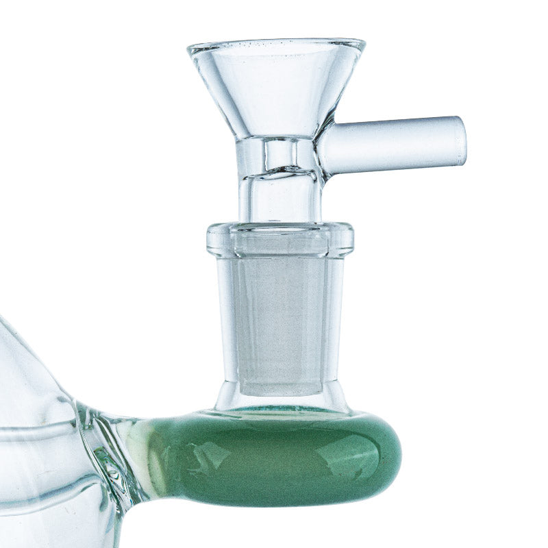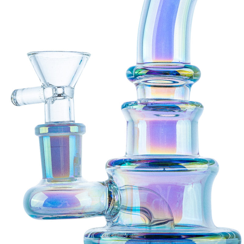Mini dab rig or nano dab rigs can sit on the palm of your hand, but you can still use ordinary size quartz bangers or titanium nails on them(14mm male or female), but the downside of using a mini dab rig is that they won't be able to contain as much water for chilling the vapor like a normal-sized dab rig. But they are still super fun to use and super lightweight to carry!